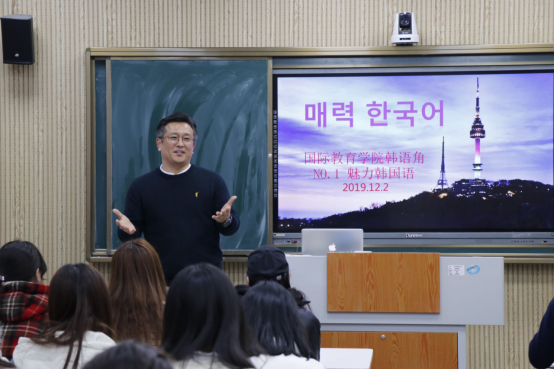 本次韩语角活动的主题是“魅力韩国语”,由韩国人气外教白炅翰老师主讲,员工参与互动的形式进行。白老师从衣食住行中的韩国语和韩国文化为主要内容,给同学们上了一堂生动有趣的韩国语课。通过俗语和经典小故事让同学了解了韩国语的独特魅力。其中,韩国人的礼仪文化和饮食文化让同学们感受到了“东方礼仪之国”的韩国传统文化的魅力,也提高了自己学习韩国语的积极性。在最后的互动环节,同学们踊跃发言,白炅翰老师也兴致高涨,给大家播放了一首韩国传统民谣《阿里郎》,整场活动在悠扬动听的旋律中结束了。