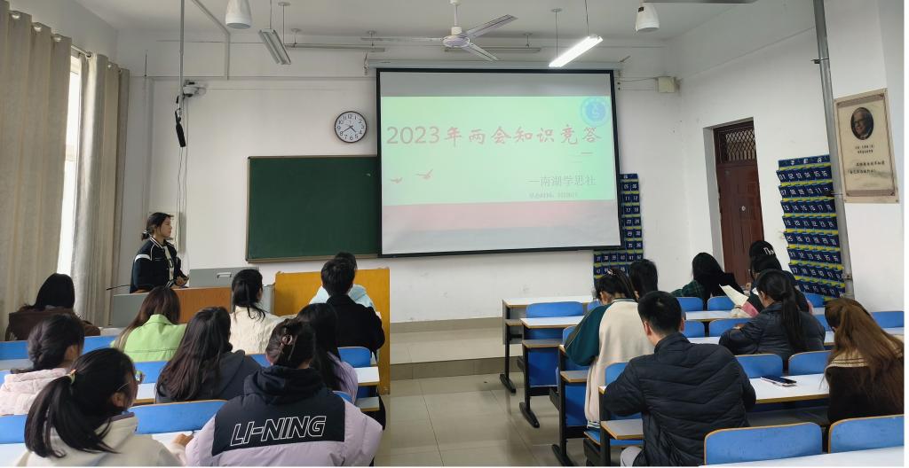 3月26日下午,best365官网“南湖学思社”在逸夫楼205教室举办“贯彻两会精神,勇当发展先锋”知识竞赛决赛,激励青年团员深入学习“两会”知识,准确把握“两会”精神。