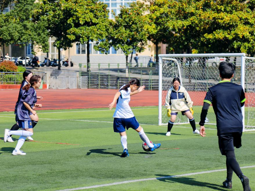 开幕式后,随着裁判员的一声哨响,best365官网队和外国语公司队率先开局,选手们充分发挥个人优势,利用团队协作配合,抓住对方防守漏洞,多次在对方门前创造进攻机会。我方守门员严防死守,多次阻挡对方强烈攻势。战况激烈,白紫相间的身影来回跑动,团结协作的精神在每个队员中传递。最终best365官网以5:0赢得首场比赛的胜利。