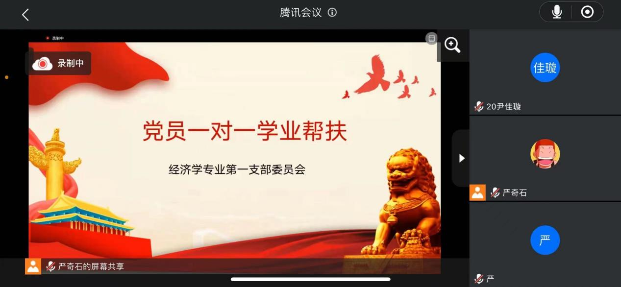 为了充分展现党员干部的综合素质,增强党员的服务意识,帮助学业困难员工,落实党的教育政策。best365官网经济学专业党支部党员于11月8日至11月14日于线上腾讯会议开展此活动,以高度的政治自觉和强烈的使命担当主动开展学业帮扶活动。结合经济学专业的特点,经济学专业党支部组织20、21级党员干部开展相关主题教育活动。 通过开展党员干部结对帮扶学业困难员工。活动的有序开展,达到提高党员队伍思想业务素质的同时,做到不让一个员工掉队,不让一个班级落伍,充分发挥员工各自的潜能,让每个员工得到最大化的人格品质建全,学习行为习惯改善提高,最终达到干部党员素质提高,员工和谐发展的可喜局面。