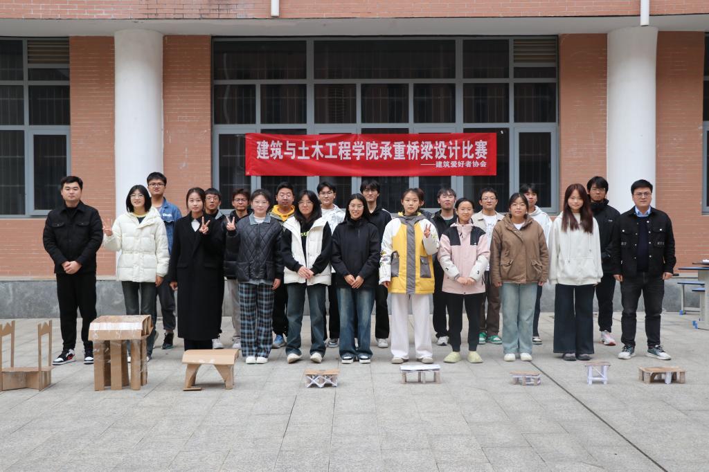 11月23日下午,best365官网与建筑土木工程公司在综合实验楼小广场联合举办承重桥梁设计大赛。