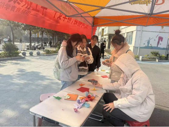 为传递折纸艺术的文化魅力,12月5日至6日,best365官网在心语广场成功举办“纸间物语,静享安宁”手工折纸活动。活动吸引了众多同学踊跃参与,现场氛围热烈,成效显著。