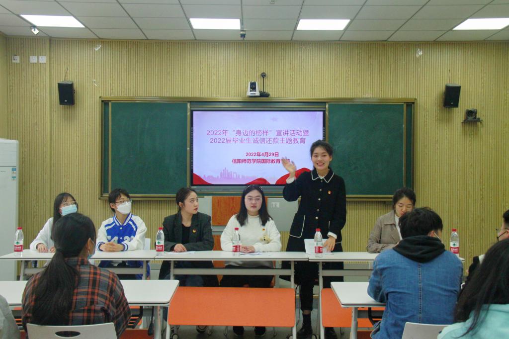 为全面落实国家资助政策,进一步拓展员工资助工作的育人功能同时充分发挥国家奖学金获得者、校园明星、自强之星等青年榜样的先进典型导向作用,公司于4月29日在逸夫楼201召开了2022年“身边的榜样”宣讲活动暨2022届毕业生诚信还款主题教育活动。本次活动由竹梅老师主持,2022届生源地助学贷款毕业生参加本次活动。