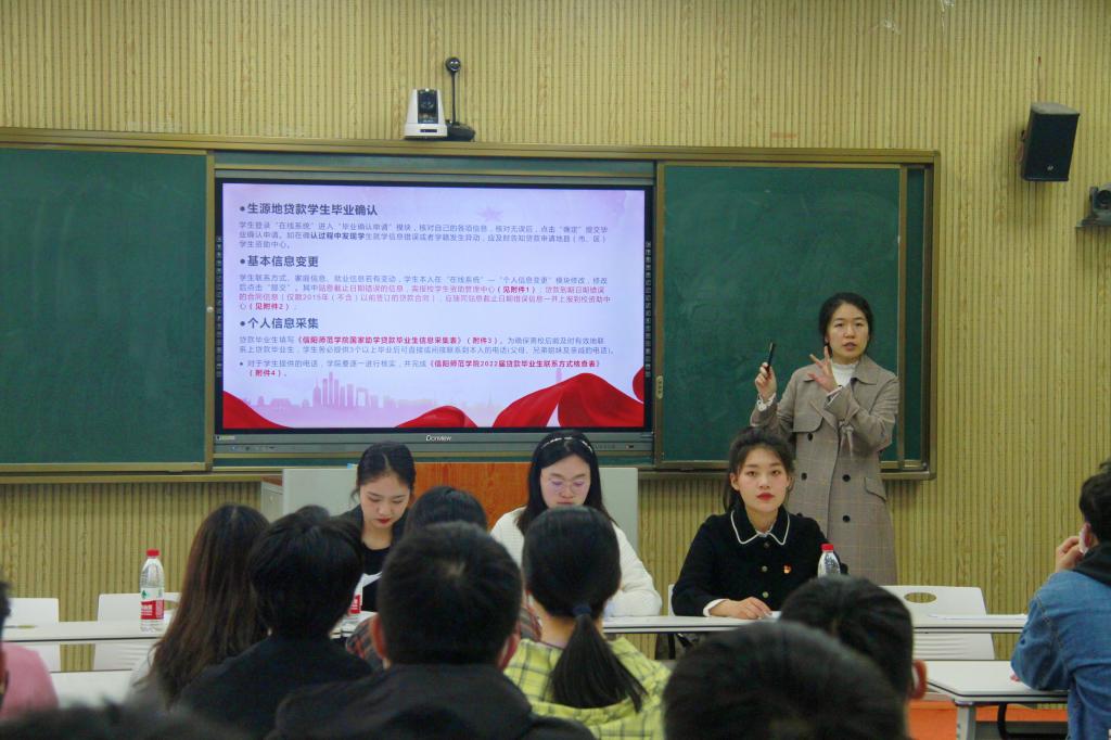 会上,竹梅老师详细讲解了资助系统上毕业确认的要求和流程、提前还款和正常还款以及升学展期还款的程序和步骤,给所有生源地助学贷款毕业生普及了相关金融知识和信用知识,强调了诚信对个人的重要性,宣传了个人征信系统的约束作用,让毕业贷款员工充分认识到个人应该承担的贷款责任和义务以及违约对个人信用造成的严重危害。