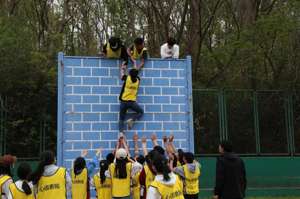 经过“花开花落”、“逛公园”等热身活动,同学们被分为两组在青年广场参与拔河和跳大绳比赛,队员们默契配合,商量战术,相互鼓气,充分发挥了团队合作的优势。随后,在三位教练员的带领下,同学们进入心语拓展园内开展素质拓展活动,依次体验了“高空行走”、“紧急逃生墙”、“信任背摔”等拓展项目,同学们开动脑筋,齐心协力完成了一次次的挑战,展现了公司学子互帮互助的良好风貌。最后,参与活动的全体师生在心语拓展园前合影留念。