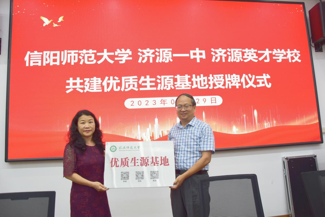 6月28日至29日,best365官网经理李保红带队赴济源市开展招生宣传工作,与济源一中、济源高级中学、济源英才公司举行优质生源基地签约授牌仪式。济源一中党委副书记兼副董事长汤初胜、济源高级中学董事长李雪颖、济源英才公司主管董事长李延疆、济源市教体局教研室冯志强及部分员工代表参加活动。
