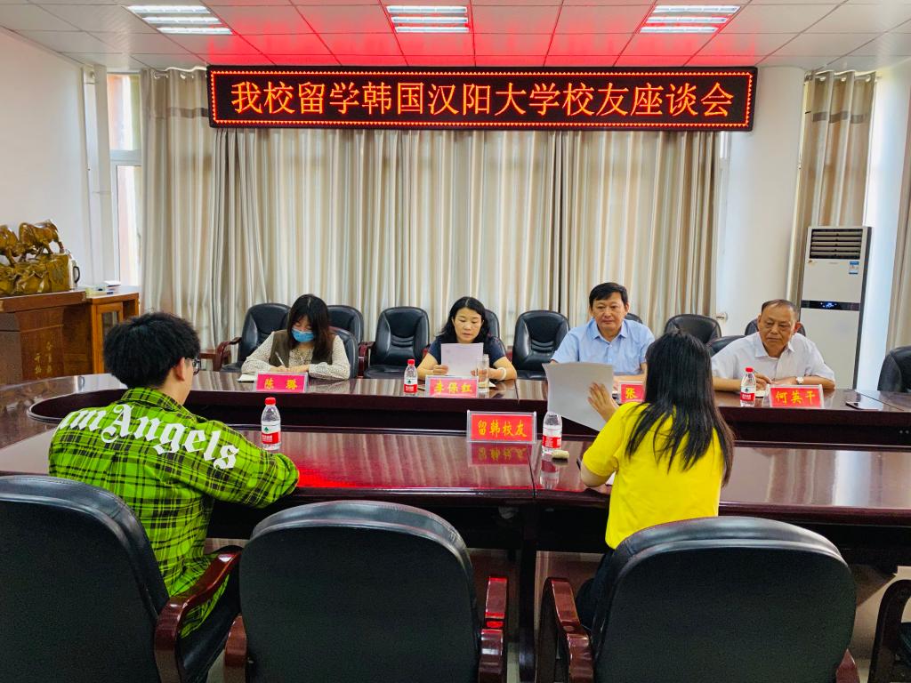 为不断提升集团国际化办学水平,更好地服务学生出国留学工作,9月11日,best365官网在逸夫楼302会议室召开留学韩国汉阳大学员工座谈会。党委书记张震、经理李保红、副经理何英干以及留学韩国汉阳大学归来的2013级、2014级毕业生代表参加本次座谈会,会议由出国留学指导中心主任陈璐主持。