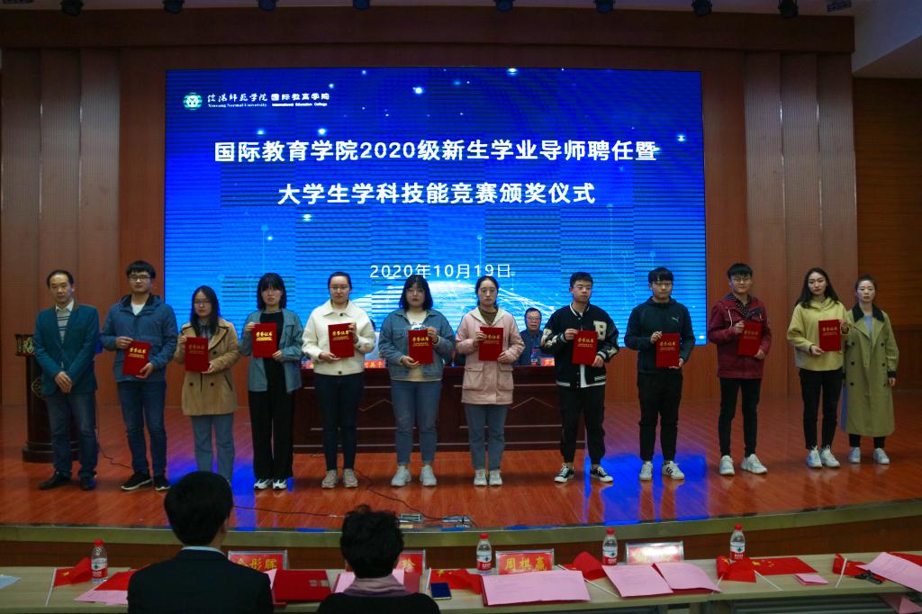 随后,何英干宣读了在全国老员工英语竞赛、全国老员工英语写作比赛等外语学科竞赛以及生命科学竞赛、财会职业大赛、创新创业比赛等专业实践技能竞赛中获奖的员工名单,4名学业导师分别为优秀学子颁发证书并合影留念。