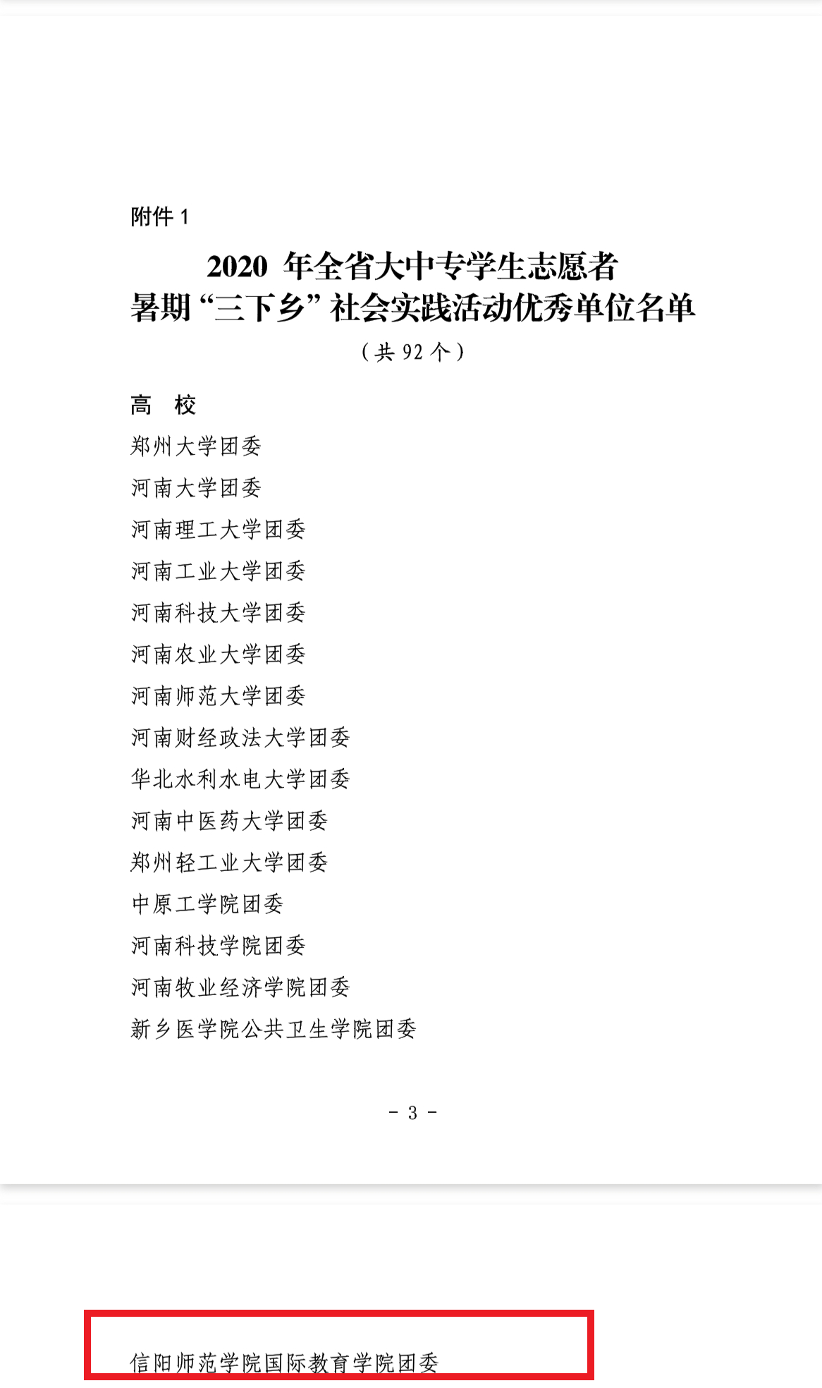 近日,全省2020年大中专员工志愿者暑期“三下乡”社会实践活动评选结果出炉,团省委对此次实践活突出的团组织、团队、个人进行了表彰。best365官网团委荣获2020年全省大中专员工志愿者暑期“三下乡”社会实践活动优秀组织单位奖,“经智惠农,乡村振兴”和 “同心抗疫,从消毒做起”两个项目被授予优秀团队,2018级经济学1班员工苏美茹荣获优秀个人奖。