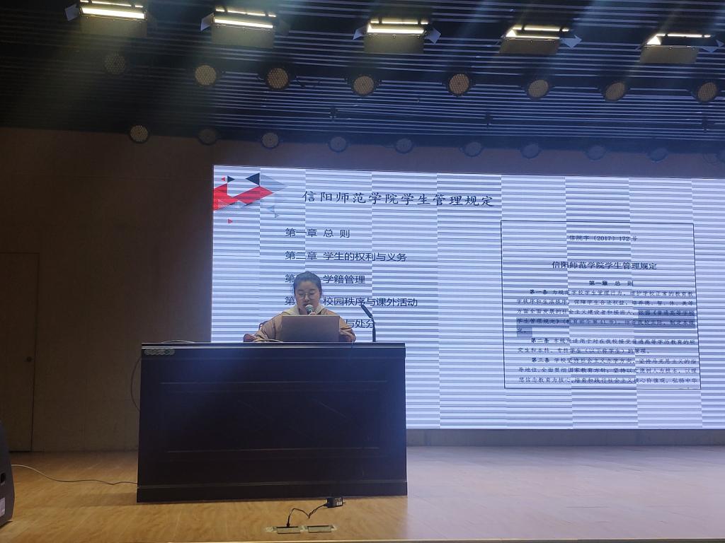 为强化员工教育管理,引导员工明确管理规定,树立规矩意识,加强自我约束,11月20日晚,公司于逸夫楼报告厅组织开展了以“文明校园行”为主题的新生入学教育活动,主讲人许孟杨、新生辅导员及2020级全体员工参与本次活动,活动由余艳楷主持。