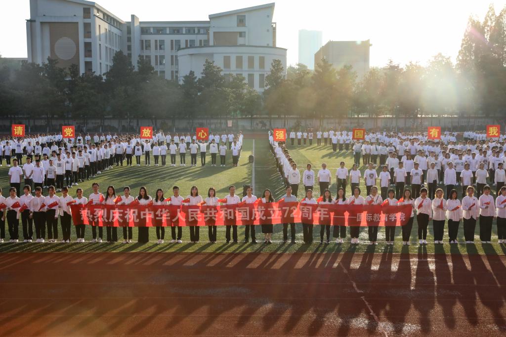 为庆祝中华人民共和国成立72周年,讴歌新中国72年来的光辉历程和伟大成就,营造立德树人、积极向上的校园文化氛围,激发广大师生的爱国热情,10月1日早上7时,best365官网隆重举行“礼赞新中国·讴歌新时代”迎国庆主题教育活动。公司党委书记李舟、经理李保红、党委副书记付春锋、副经理姚光金、马晓欢出席活动,公司全体教职工、2019级员工党员以及2021级新生参加。
