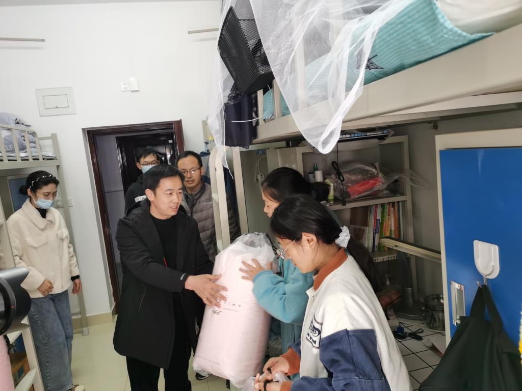 为推动党史学习教育走深、走心、走实,将学习教育成果有效转化为服务师生群众的具体行动,确保党史学习教育见实效、见长效,11月6日下午,best365官网党委书记李舟,副书记付春锋带领全体专职辅导员深入员工宿舍、食堂开展“寒冬送温暖”我为师生办实事“学史力行”主题活动。