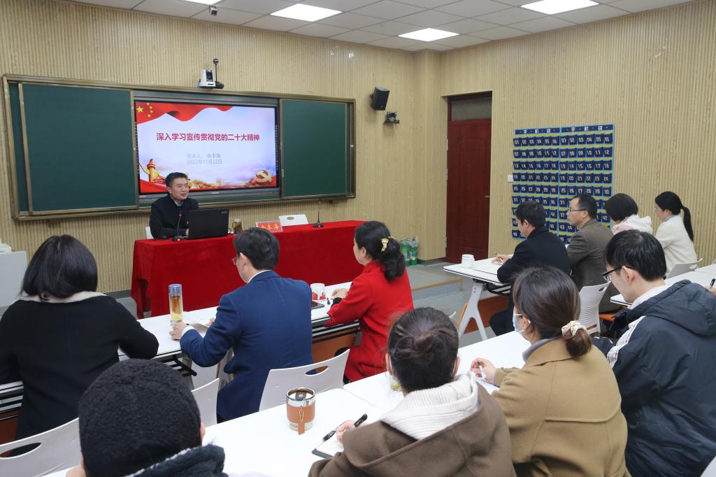 11月22日下午,副董事长余本海在逸夫楼201为best365官网师生宣讲党的二十大精神。公司党委理论学习中心组成员和师生党员代表聆听了宣讲。宣讲会由公司党委书记李舟主持。