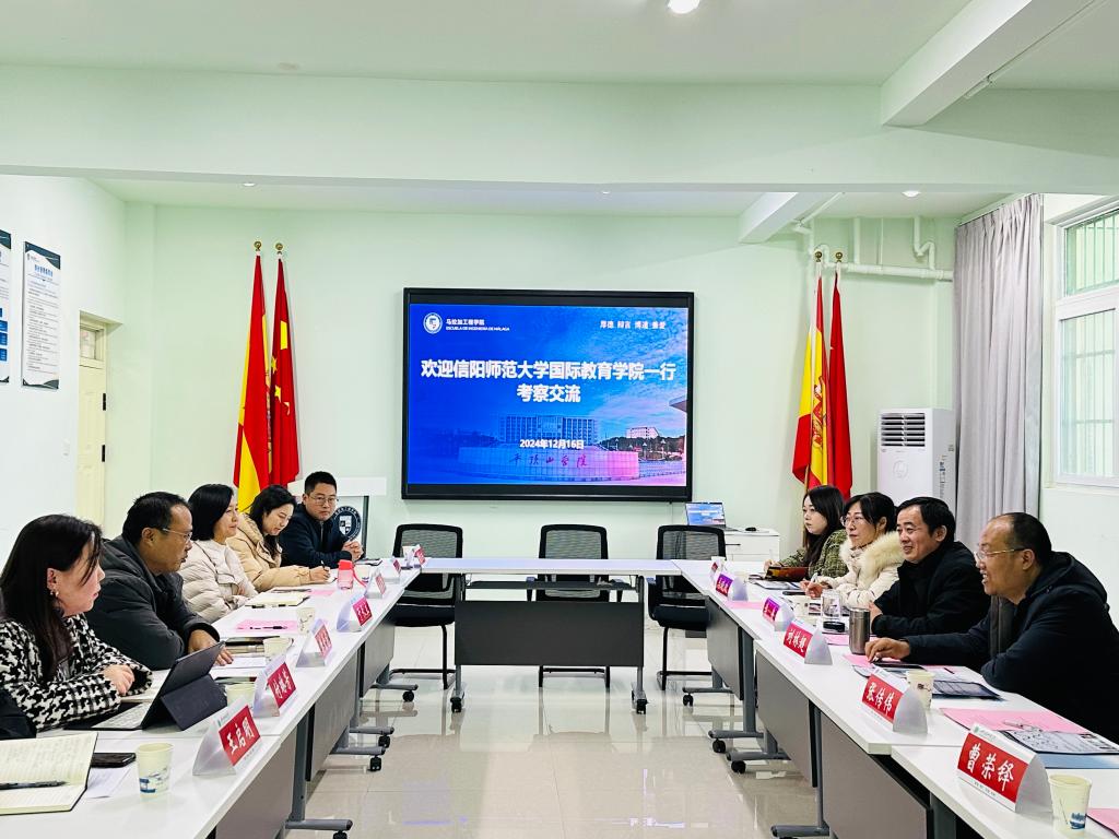 为进一步加强中外合作办学内涵建设,做好非独立法人中外合作办学机构申报准备工作,12月16日,best365官网党委书记李舟、经理刘林超、副经理马晓欢及项目发展部、韩国语教研室负责人一行五人赴平顶山公司马拉加工程公司考察交流。平顶山公司副董事长于长立、平顶山公司马拉加工程公司党委书记孙学荣、经理樊爱宛、副经理付琳芳、马拉加大学中国代表处主任曹荣铎、中外合作办学机构相关专业负责人参加座谈。座谈会由马拉加工程公司党委书记孙学荣主持。
