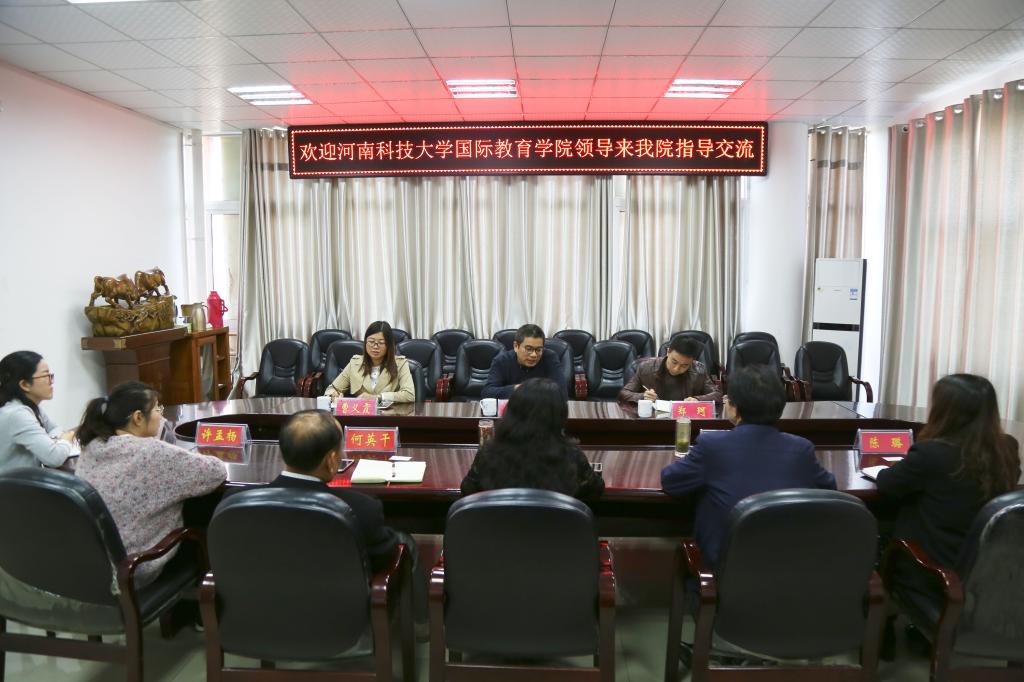 10月31日,河南科技大学best365官网副经理王春一行三人到公司交流考察中外合作办学工作。best365官网经理李保红、副经理何英干及教学部、办公室和团学负责人参加会议。李保红主持交流座谈会。