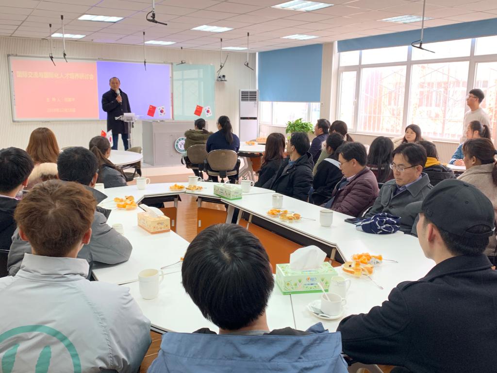 研讨会主要围绕新时期高校国际交流与国际化人才培养、公司师生如何通过合作项目留学汉阳大学等问题进行了探讨和交流。何英干副经理就目前国教院的国际交流与项目员工的外语教学和专业课程建设等问题与韩国教授交换了意见,同时介绍了公司员工出国留学方面的相关优惠政策和规定。汉阳大学分子生命科学专业金晓骏(HyoJoon Kim)教授和土木工程专业安镕翰(YongHan Ahn)教授分别介绍了两个专业的国际化办学目标和人才培养情况,公司青年教师也就相关专业问题与韩国教授进行了深入研讨,并分享了学术前沿相关研究成果。