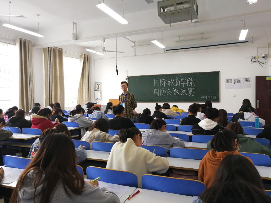 为增强公司员工的爱国意识、普及老员工国防知识,11月7日中午,公司在逸夫楼206、207、209教室举办了国防知识竞赛(初赛)。2019级新生班主任余艳楷、吴浩、沈艳霞三位老师和员工干部一起担任监考老师。