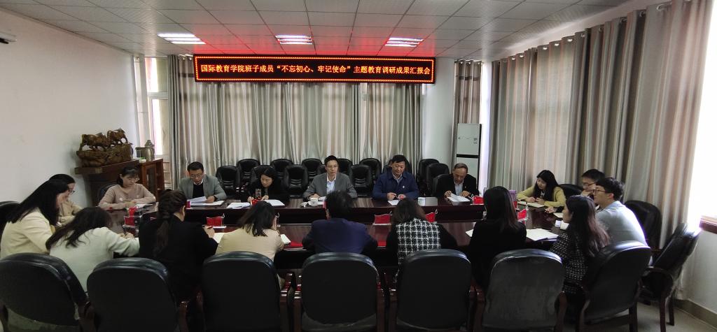 10月29日下午,国际教育公司班子成员“不忘初心、牢记使命”主题教育调研成果汇报会在逸夫楼302会议室召开。校主题教育第四巡回指导组副组长、员工处副处长陈铭出席指导,公司班子成员以及全体教职工参加。会议由党委书记张震主持。