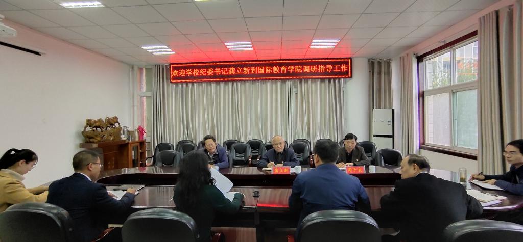 龚立新肯定了国际教育公司在扩大公司开放办学,促进国际交流推进国际化人才培养等方面取得的成绩。他强调,在深入推进“不忘初心、牢记使命”主题教育中,公司要通过对表对标找差距,全面检视反思,深入调查和整改落实等工作切实破解制约瓶颈,保障事业健康持续发展,为公司高水平师范大学建设提供重要支撑。结合党风廉政建设,他提出十个方面要求:一是学思结合,要加强政治理论知识、业务知识、党史国史综合知识等方面学习,以理论滋养初心,在学思践悟中不断促进事业发展;二是担当尽责,要勇于担当、善于担当、乐于担当,要切实提升敢于担当的精神、善于担当能力和主动担当的境界;三是守正创新,要不断解放思想,以更加开放的办学视野,进一步引进优质教育资源,创新办学模式,加强员工国际交流,提升国际化人才培养水平;四是统揽全局,谋一隅要先谋全局,要树立全局观念,将中外合作办学工作纳入公司整体战略,在健康持续发展中提升服务公司中心工作能力;五是依法行政,要依法办学,加强制度建设,要做制度执行的表率,带动广大师生自觉尊崇制度、严格执行制度、坚决维护制度。六是心系群众,要深入群众,主动关心群众,不断增强教职工归属感、荣誉感和认同感,充分激发教职工干事创业热情;七是狠抓落实,要保持定力抓落实,精准精细抓落实,强化统筹抓落实,坚决把既定部署落实到位,真正把每个细节落实到位;八是团结协作,团结就是战斗力,要着力建设坚强有力的领导班子,形成整体合力,发挥整体功能,促进事业又好又快发展;九是狠抓队伍建设,要注重思想建设、能力建设,努力造就一支热爱中外合作办学事业、精通外事业务的职业型、专家型干部队伍。十是廉洁自律,党风廉政建设永远在路上,要提高思想认识,牢树红线意识、底线意识和规矩意识,坚守初心使命,通过主题教育的高质量开展积极营造良好的事业发展环境。