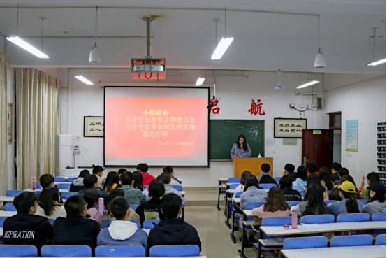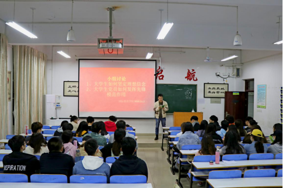 党小组组长陈泊旭组织各小组成员对以上两个问题展开讨论,大家纷纷各抒己见,提出自己的看法,相互交流,相互沟通并推荐代表上台发言。
