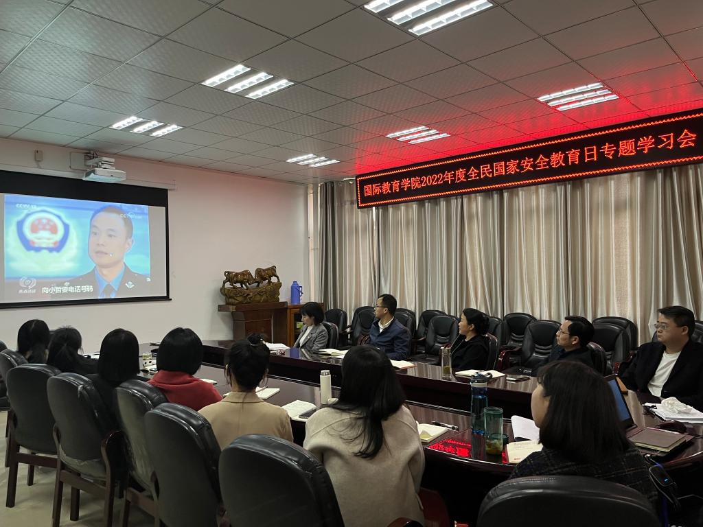 4月15日是全民国家安全教育日,公司党委高度重视,公司党委书记李舟亲自安排部署公司国家安全主题宣传教育活动。下午3点,全体教职员工在逸夫楼302会议室组织召开2022年度全民国家安全教育日专题学习会,集中观看了国家安全专题片《危情谍影》,围绕“总体国家安全观”提出的时代背景、丰富内涵和实践要求进行了系统学习,并就中国特色社会主义进入新时代,我国国家安全面临的新形势做了深入研讨。